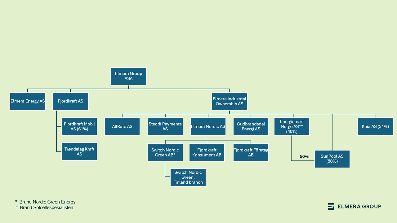 Elmera Group ASA is the parent company in a group of several companies selling counseling, services and computer software to energy companies, power agreements and various products for the low emission society. Customers are end users of electricity in both the consumer and business segments, the wholesale market and also energy companies in Norway, Sweden and Finland. The Group’s head office is located in Bergen. Elmera Group ASA is listed on Oslo Stock Exchange (OSE). Ticker: ELMRA